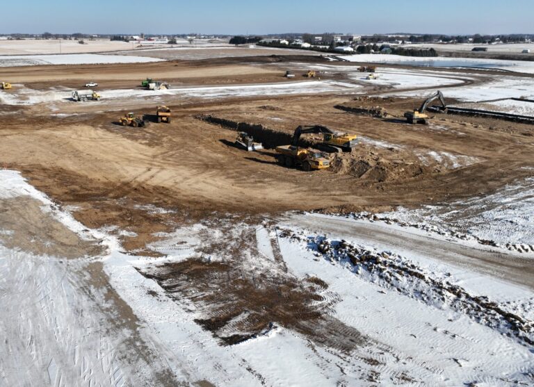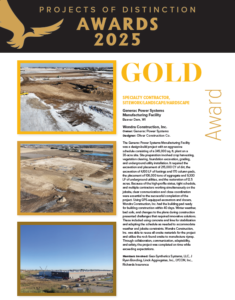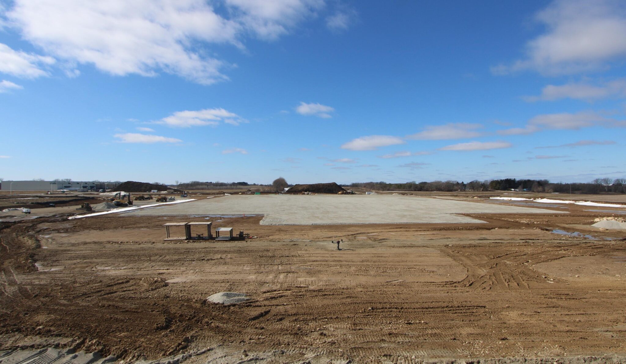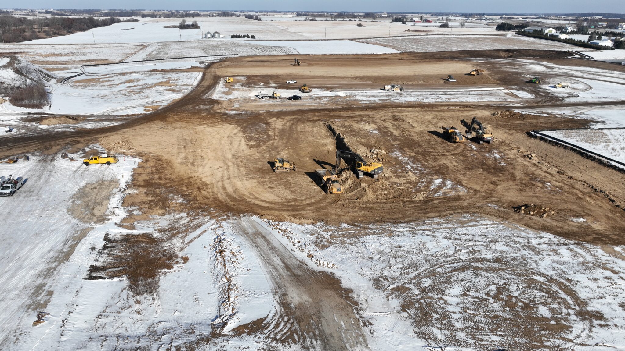 The Generac Power Systems Manufacturing Facility was a design-build project with an aggressive schedule consisting of a 345,000 SF plant on a 30-acre site. Site preparation involved crop harvesting, vegetation clearing, foundation excavation, grading and underground utility installation. It required the excavation and placement of 215,000 CY of dirt, excavation of 4,100 LF of footings, 170 column pads, placement of 106,000 tons of aggregate, 9,300 LF of underground utilities and restoration of 12.5 acres. Because of the high-profile status, tight schedule and multiple contractors working simultaneously on the jobsite, clear communication and close coordination was essential to the successful completion of the project. Using GPS equipped excavators and dozers, we had the building site pad ready for building construction within 40 days. Winter weather, bad soils and changes to the plans during construction presented challenges to which we found innovative solutions. These included using concrete and lime for stabilization and adapting our schedule as needed to accommodate weather and jobsite constraints. We were able to reuse all onsite materials for the project and utilize the rock found onsite to manufacture Rip Rap. Through collaboration, communication, adaptability and safety, we were able to complete the project on time while exceeding expectations.